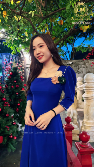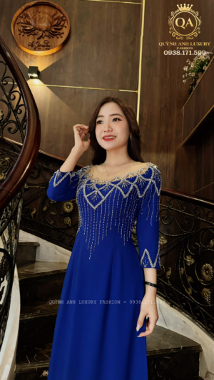 Dạ Hội Áo Dài Bà Sui Xanh Côban Trung Niên Cao Cấp Đẹp Nhất Tuổi 50