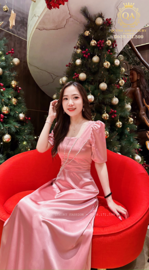 Áo Dài Dạ Hội Đẳng Cấp Trung Niên Dự Tiệc Hồng Da Nelly Dress