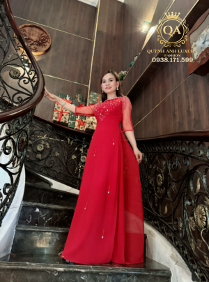 Áo Dài Dạ Hội Đẳng Cấp Trung Niên Dự Tiệc Đỏ Mận Nelly Dress